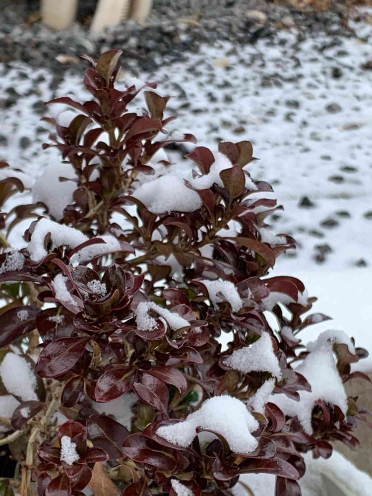 コプロスマに雪が積もっていてチョコレート色が美味しそう🍫