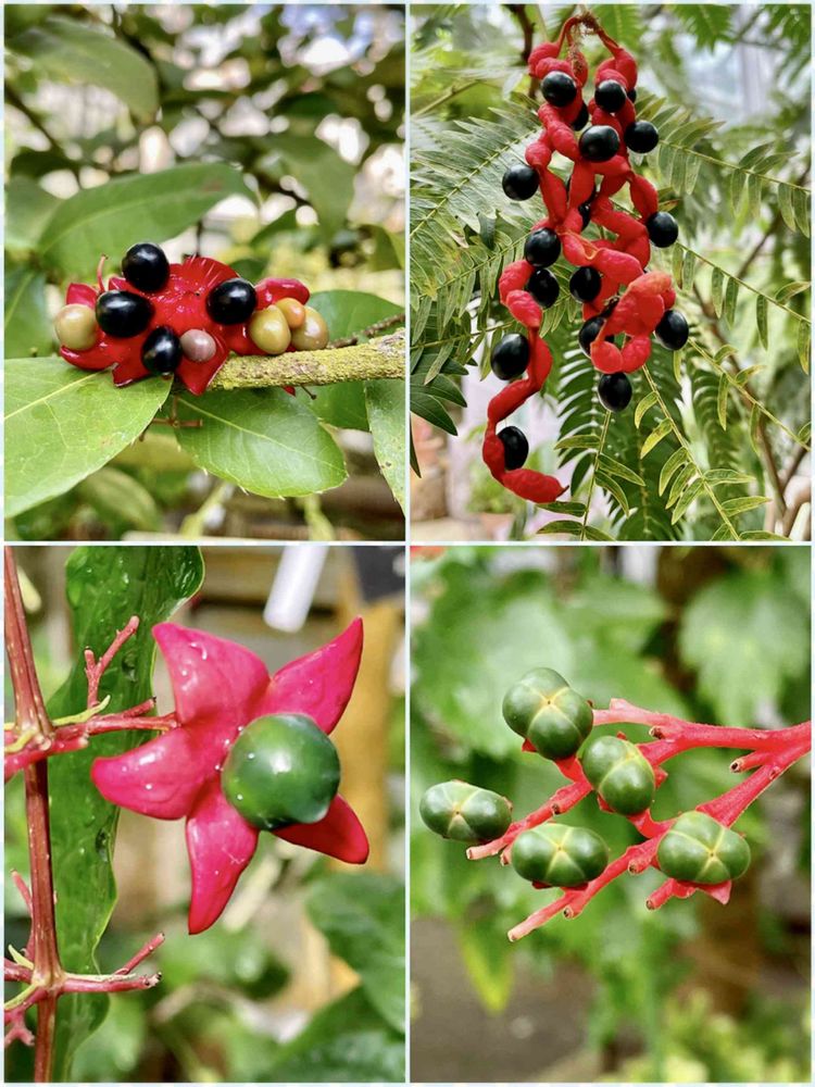 ミンちゃんさん。🤗 🔴の実って、kawaii。😋❤️ 全部 お初です。お恥ずかしい話。😰 ミッキーマウスの木って、あるんですね。😁 その隣のエバーフレッシュとゆうやつと、形は違えど似てますねー。😊💕