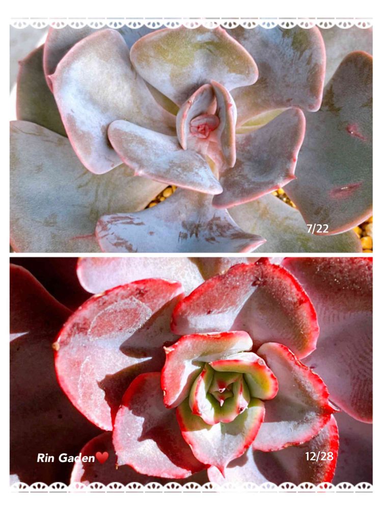 こんなにも紅葉してまるで違う多肉ちゃんみたい。綺麗な色に(*˘︶˘*).。*♡ウットリ