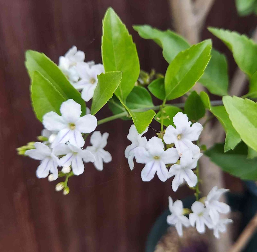 デュランタを知って知人から昨年鉢植えをもらい楽しみましたが、白色花びらを見るのは初。
