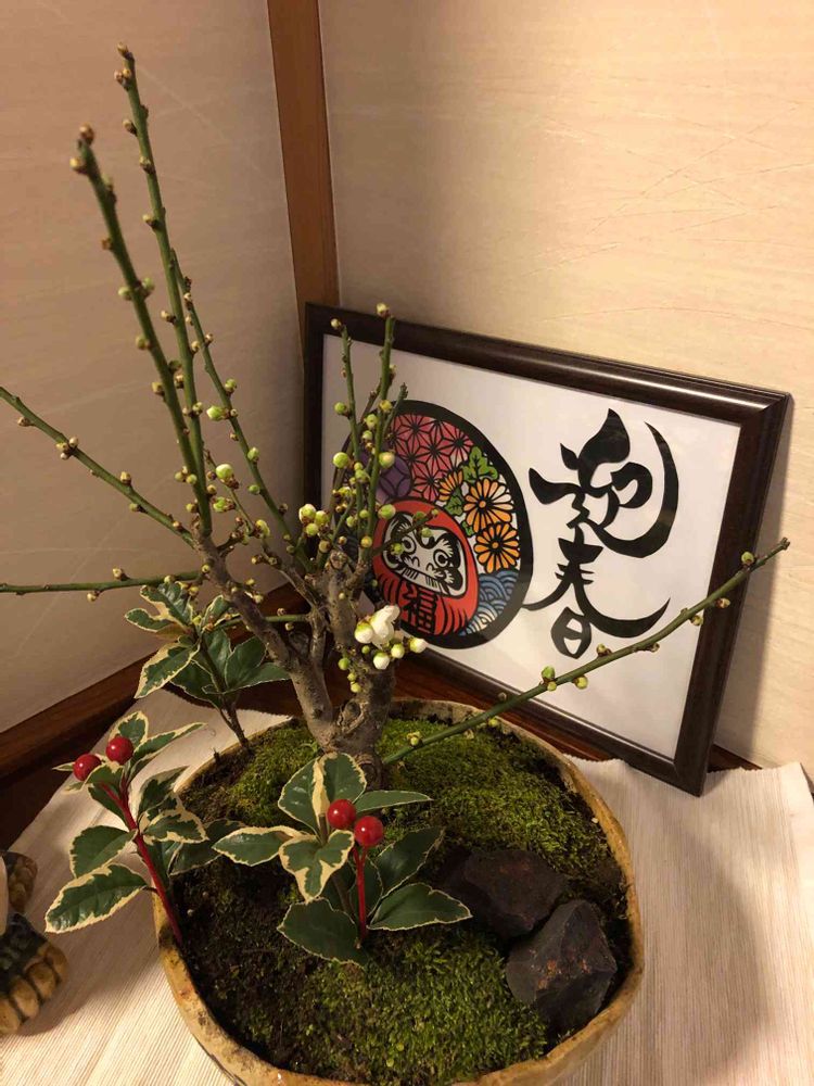 我が家の梅のつぼみも5日前に台所にいれたら ほころびだしました お正月 満開でしょうね、よかったですね