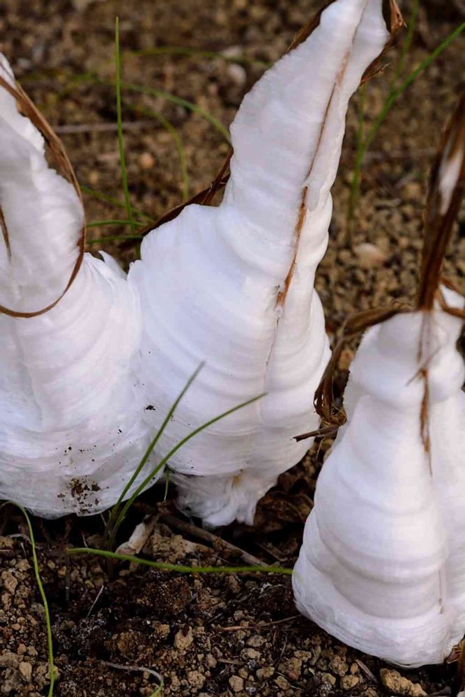 シモバシラと言う植物の枯れた茎に出来るか霜柱。氷の花とも言うようです。