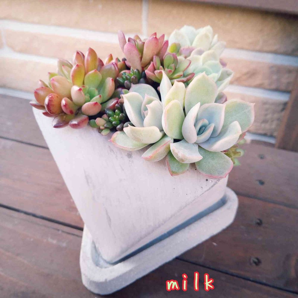 ありがとうございます〜(❁´ω`❁)💕💗💕三角の鉢に一目惚れ💗😍友達からもらった苗とお似合いでした〜🎶