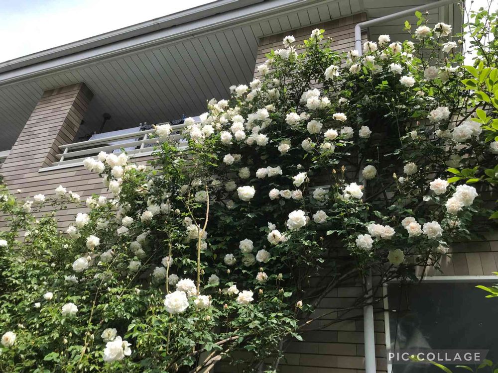 昨年の今頃はこのバラの剪定をしていたのでした。春3月になり薬剤散布をしていた夫がこのバラだけ新芽が吹いていないのに気付きました。バラ友達の助言により株元をカットしてみたところ、中指ほどのカミキリムシの幼虫が出て来ました😵😱地面からベランダの上まで伸びていたオールドローズ、春真っ先に咲いて淡い香りを漂わせ、返り咲きですが何度も咲いていたこのバラは。あえなく枯れてしまいました。思い出の薔薇でしたのに。建て替え前の大アーチに何十年も咲き続けましたが、建て替え時の引っ越しで枯れてしまい、庭ができてから再度アーチに植えるものまたカミキリムシにあえなく枯らされました。3度目の正直で植えていたのに。残念です。🙍♀️🙍♂️長いこと楽しませてくれてありがとう。