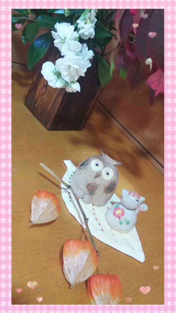敷地内にある陶芸品、フクロウさんとネコちゃん(*´`)ヵヮィィ❤︎