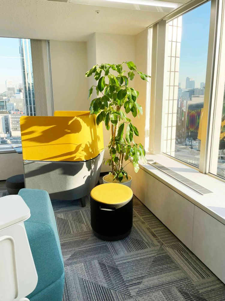 オフィス内の交流スペースにナチュラルなイメージのブラッサイアをご提案しました!