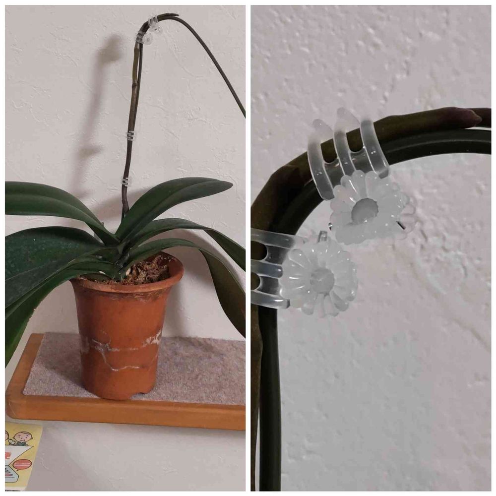 真っ直ぐに花茎を伸ばしていたら蕾の芽らしいのがついてきたので、折らないよう注意しながら支柱の鉄線