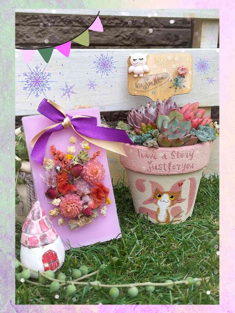 溶かしたロウにアロマオイルを加えるの忘れて、出来上がりの後にドライフラワーにピピッと振りかけました(笑)