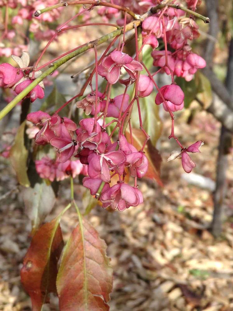 一見 ピンク色の可愛い花のように見えるのは マユミの実殻です。