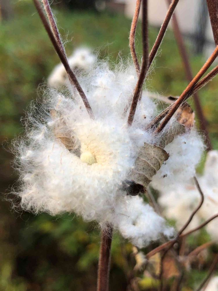 我が家にも放ったらかしのシュウメイギクに白い綿毛がふわふわしていました。