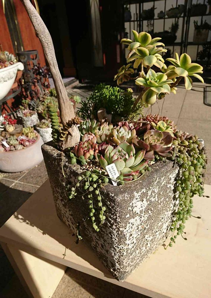話は変わりますが、寄せ植えは確かに、バックに変わった石、 流木、背の高い多肉植え込みする事に、よって寄せ植えにも、変化がでてきます。