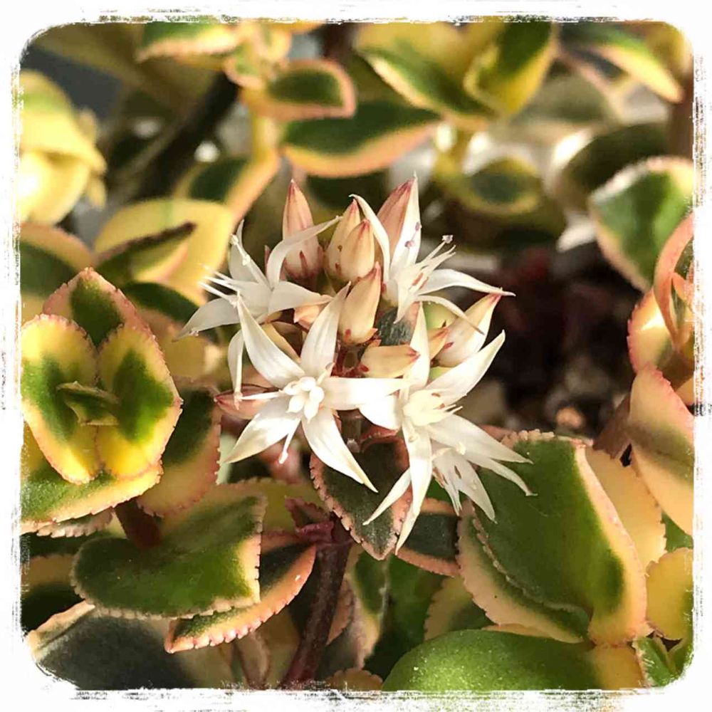 斑入りの葉を楽しむ為に育てていたから、お花が咲いてご褒美を貰ったみたいな気分です🌼💓🎶