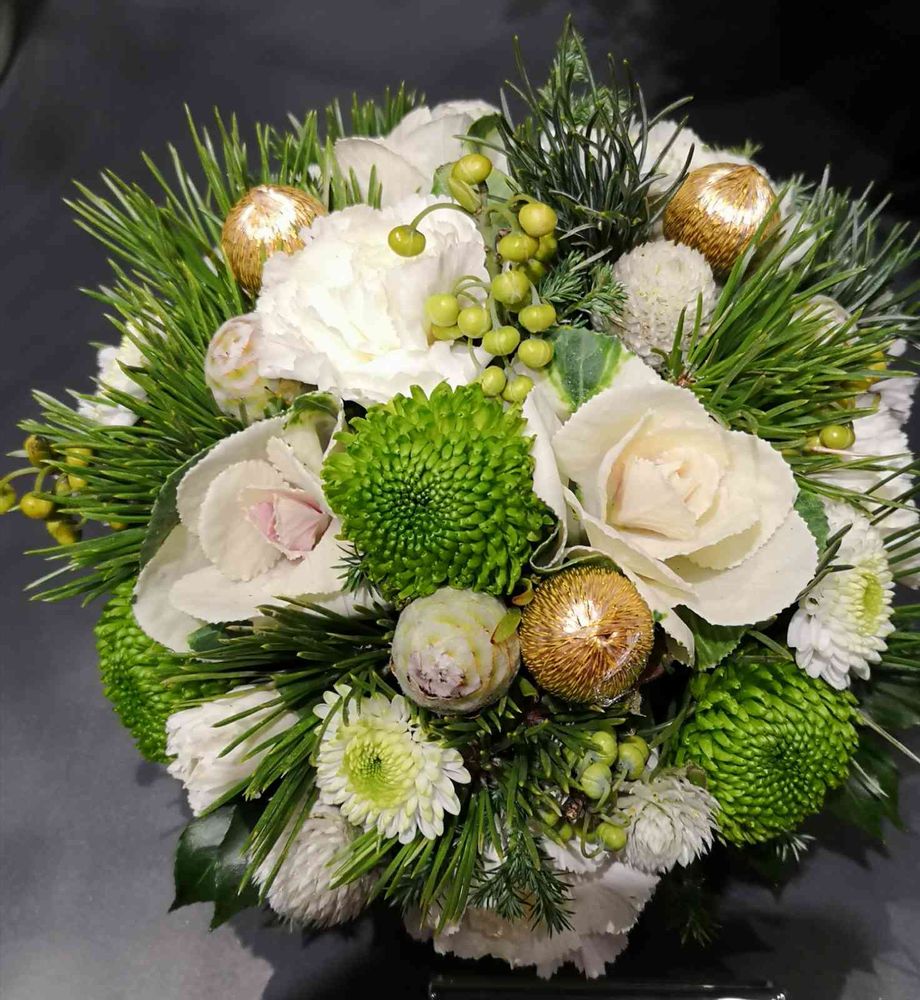 お花屋さんはお正月のアレンジになってますね〜