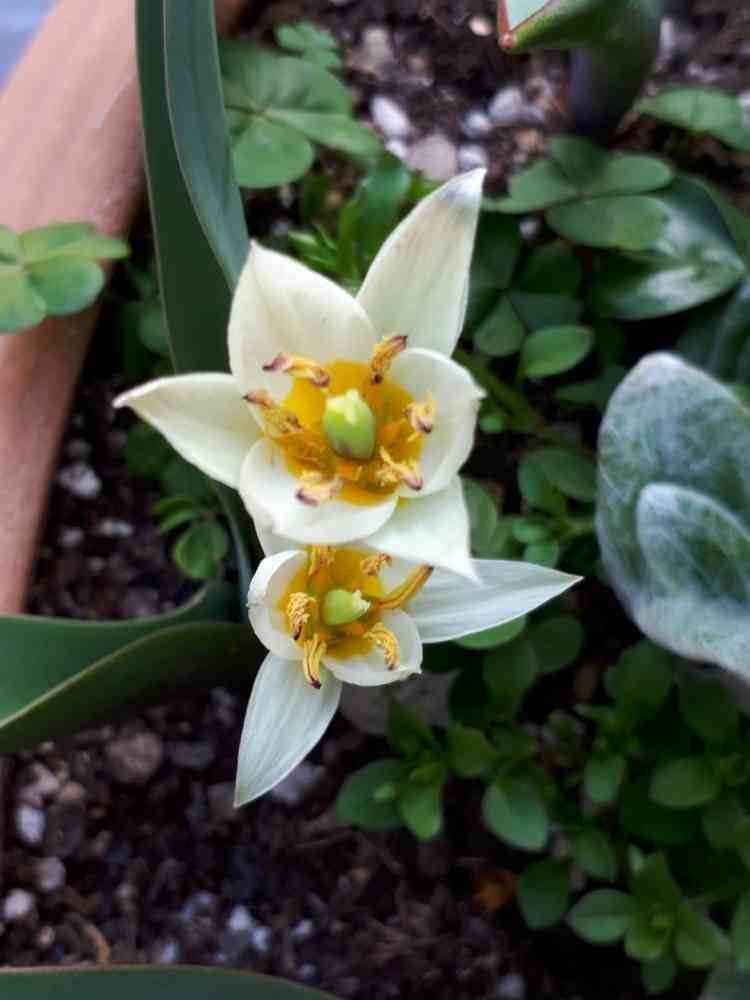 原種チュウリップ 咲きました❕小さくて可愛い❤ 親指ぐらいの花 夕方しぼんで‥ 5日目 朝は肌寒い