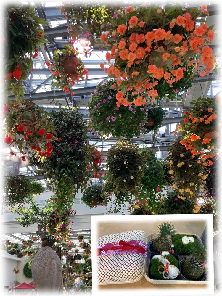 日本庭園を散策した後はたくさんの吊り花を見上げながらスタバのコーヒーをいただけるHANABIYORI館へ🌼