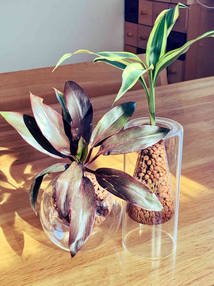 どちらも元はお花のサブスクに入っていた葉物で、しばらくして発根して、秋にハイドロカルチャーにしました。