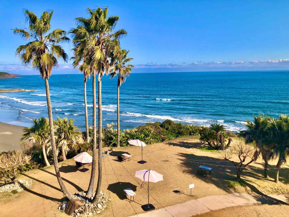 数々の宮崎県からの投稿、綺麗な景色が多く感動しています☺️此方は日向市のSTAIRS OF THE SEAという所なのですね、本当にリゾート感が満載な美しい場所ですね🏝背丈の高いオキナヤシモドキ(ワシントンヤシモドキ)との相性も抜群ですね😆
