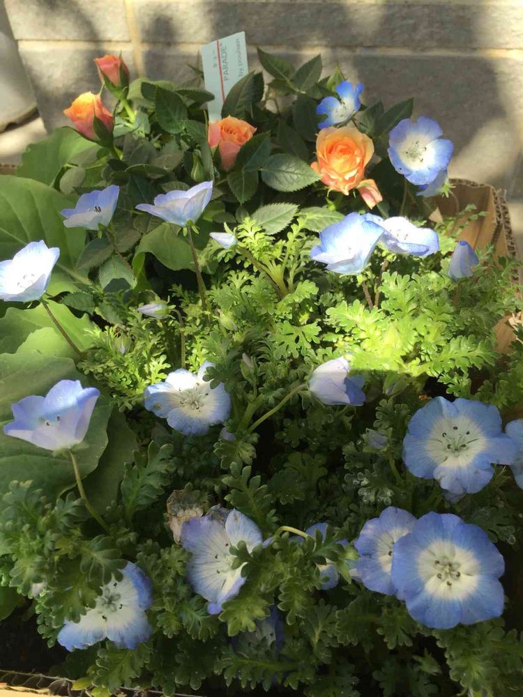 ミニ畑を何を植えようか、お花畑にしようと考えてたら分からず、結局、鉢植えにしてしまったかネモフィラ💠