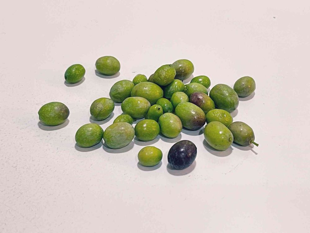 完熟しなかったオリーブコレッジョラの実は種を抜いて塩漬けにしました。青いから渋が抜けて食べられるのは3月か4月頃になりそうです。