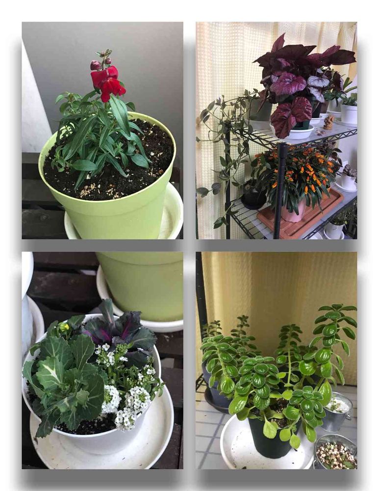 おはようございます。金魚草60円とミニ葉牡丹寄せ植え80円が仲間入り。トラデスカンチアは挿し芽ですが、外で育てるより部屋の方が綺麗に育ってくれますね。