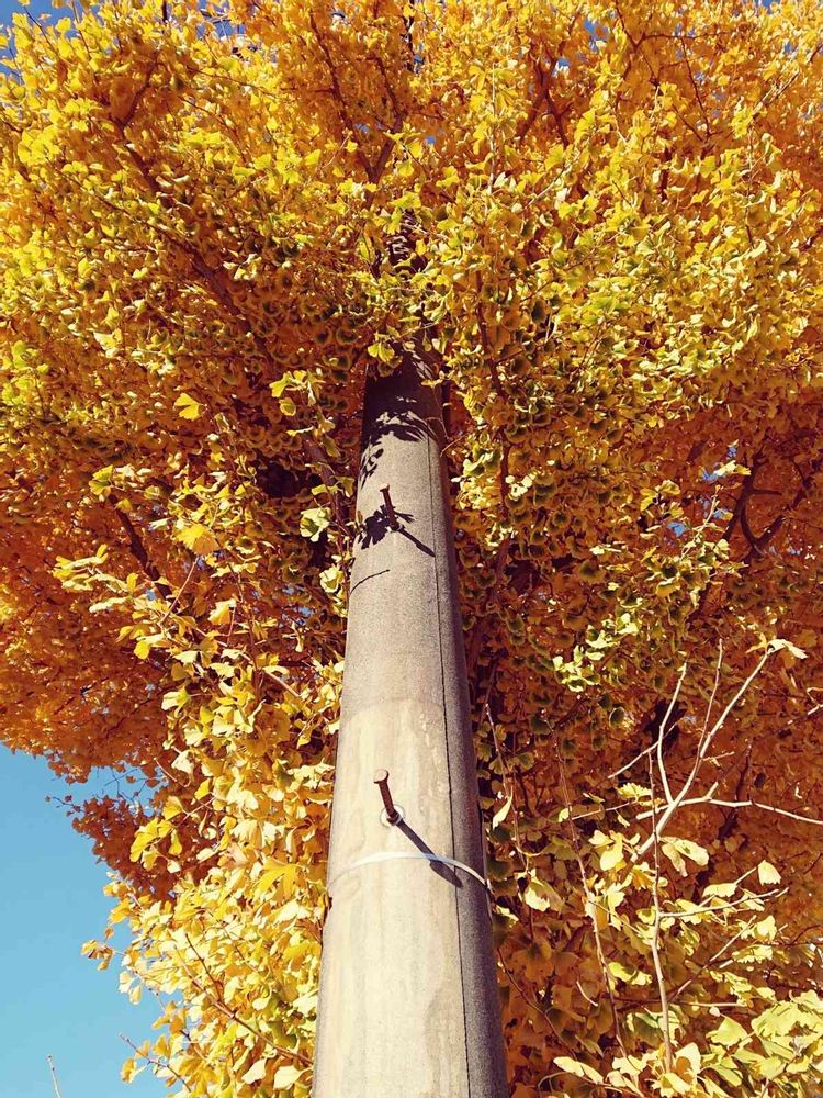 電柱が我が物顔で、まるで銀杏の幹のようでした😅