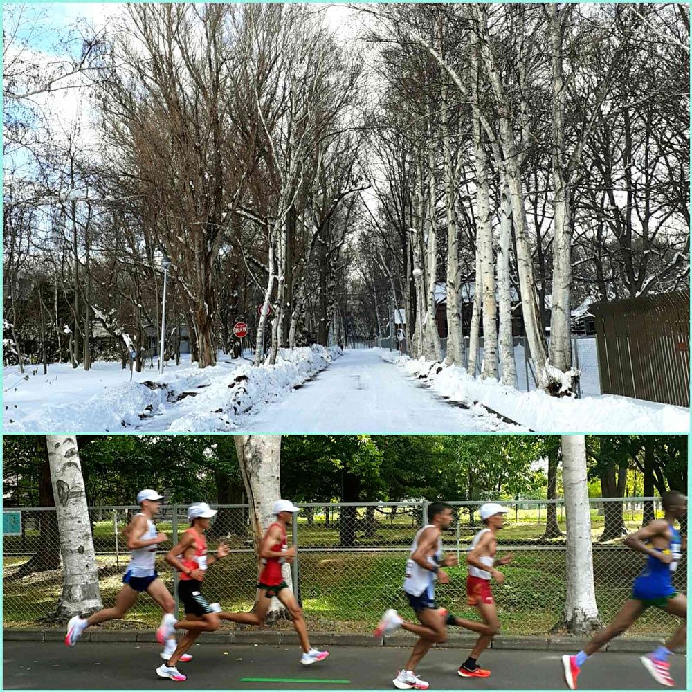 上は現在のオリンピックマラソンコース(北大構内)です。2021.8.8🏃♂️ぐっと📺前でこらえていましたが、大迫傑選手のラストレース☝️一目、ひと応援👊したくなり、思わずすぐそこ北大にひとっ走り向かってしまいました🙇♀️