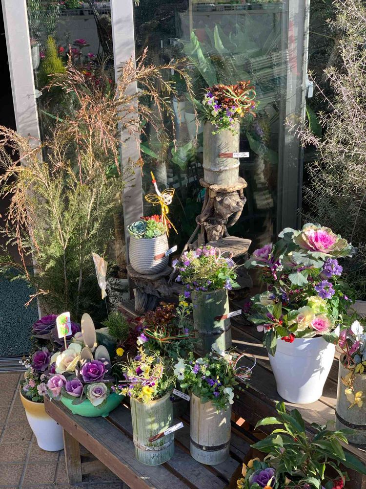 おはようございます♪ お正月寄せ植え、アレンジ、花束たくさんご用意しています🎍