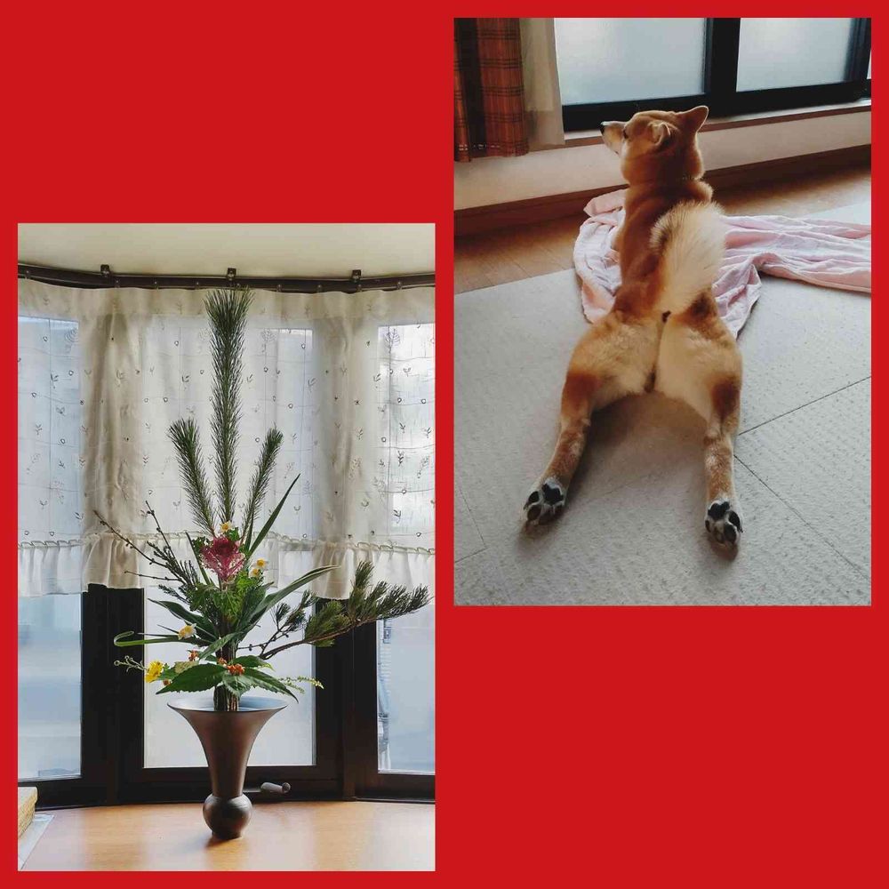 今年最後写真は、色々突っ込み所の多い出窓🤣の立花(床の間のない家あるある)と清麻呂(柴犬♂1歳)のオケツです。