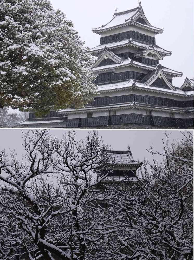 松本市街地の冬は晴れの日が多く、松本城に雪がつく事は余り無いんですよ。