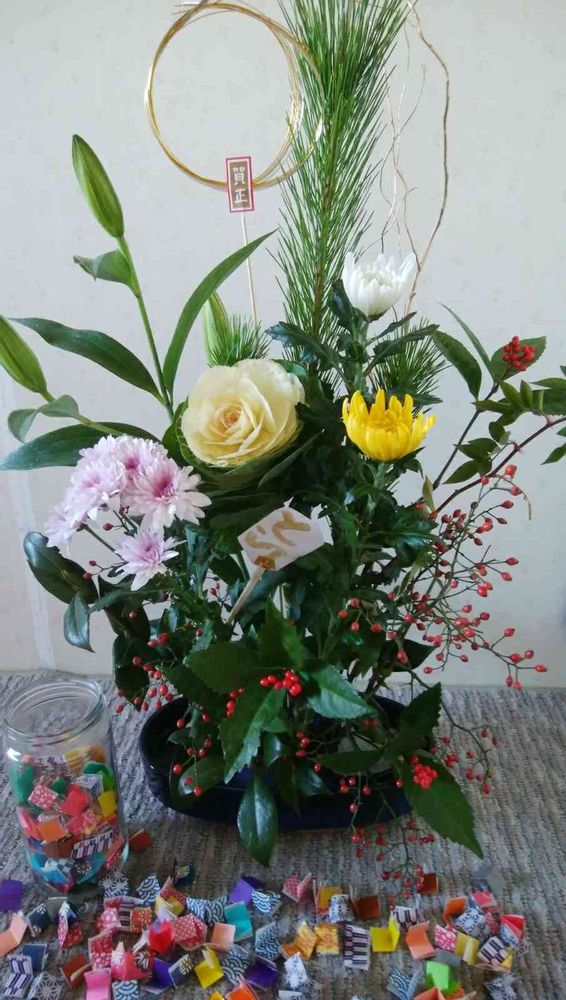 新しい年もよろしくお願いいたします。小さな折り紙に今日の嬉しかった事を書いて瓶に入れたのを、今夜楽しみに読み返します☺🎶 365以上の喜びを思い出しながら💞