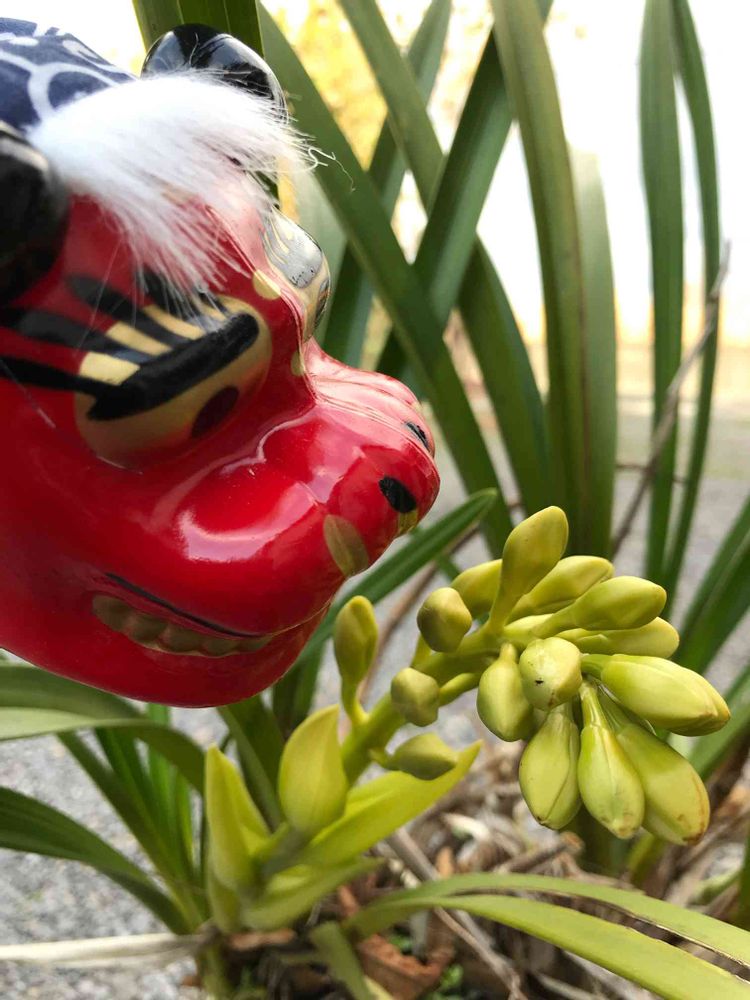 お獅子さんがシンピジュウムをクンクンしてるね🤣🤣🤣