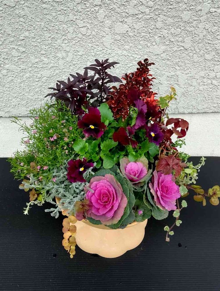 可愛いピンクの葉牡丹に、シックな色合いを合わせてみました🤗