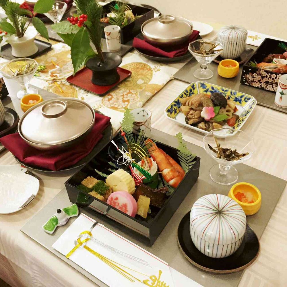 娘2人と毎年お料理の先生宅にてお節を作り、実家へ食器ごと持参して盛り付けしています😊
