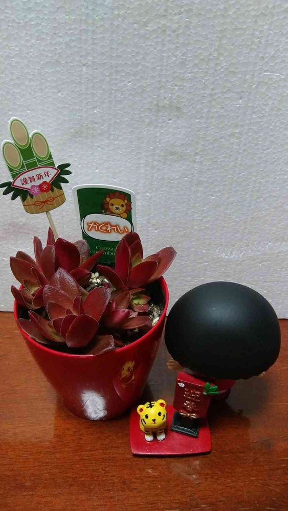 2021年最後の日にお迎えしたクラッスラ 赫麗さんとチコちゃんのどたまです(*^-^)