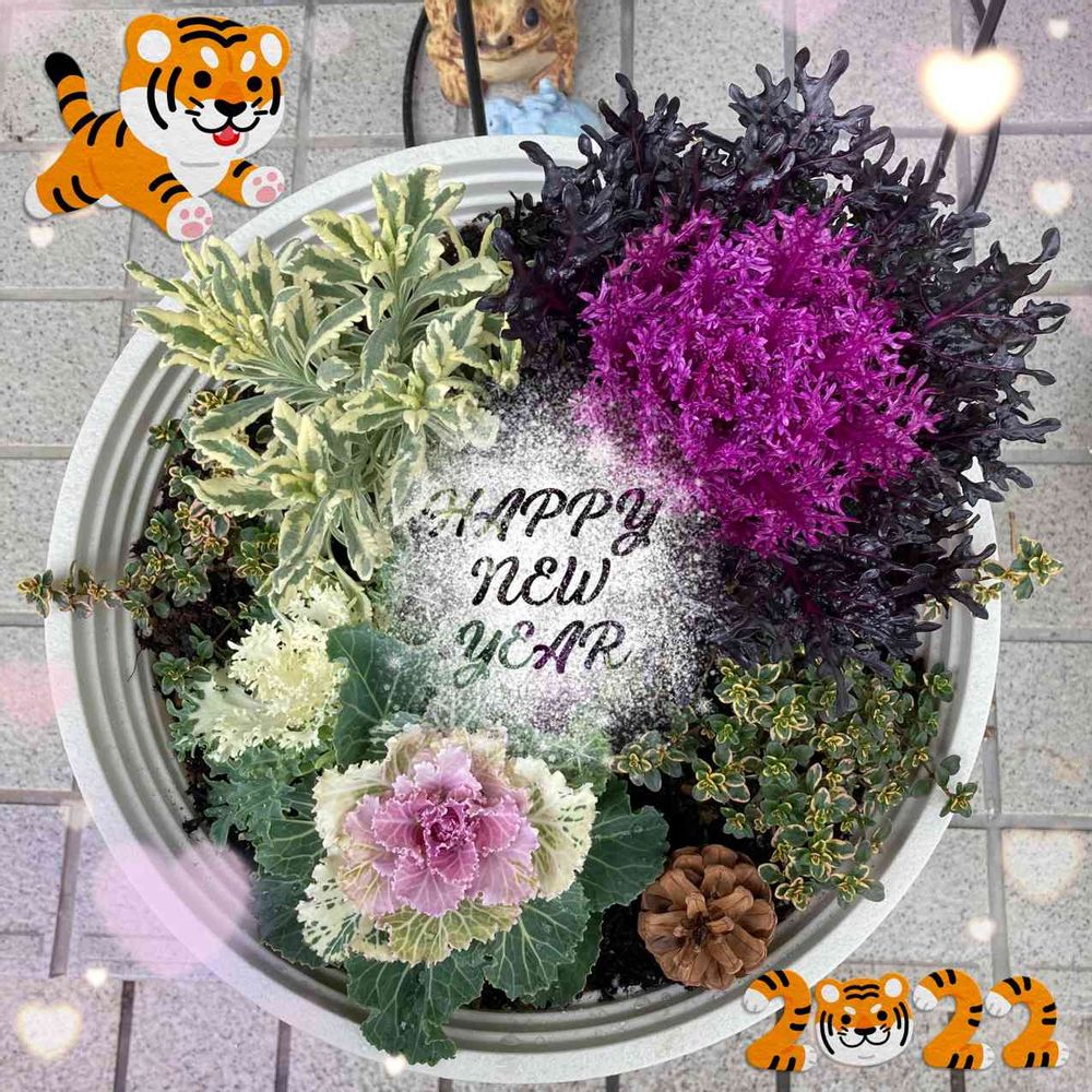 葉牡丹の寄植えのコラージュ🐯カワイイね🐯