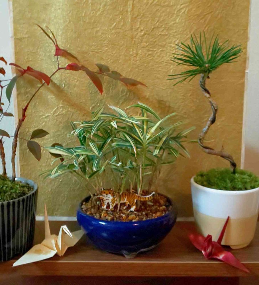 ジオラマのような稚児笹と🐯さんがキュート💕💛