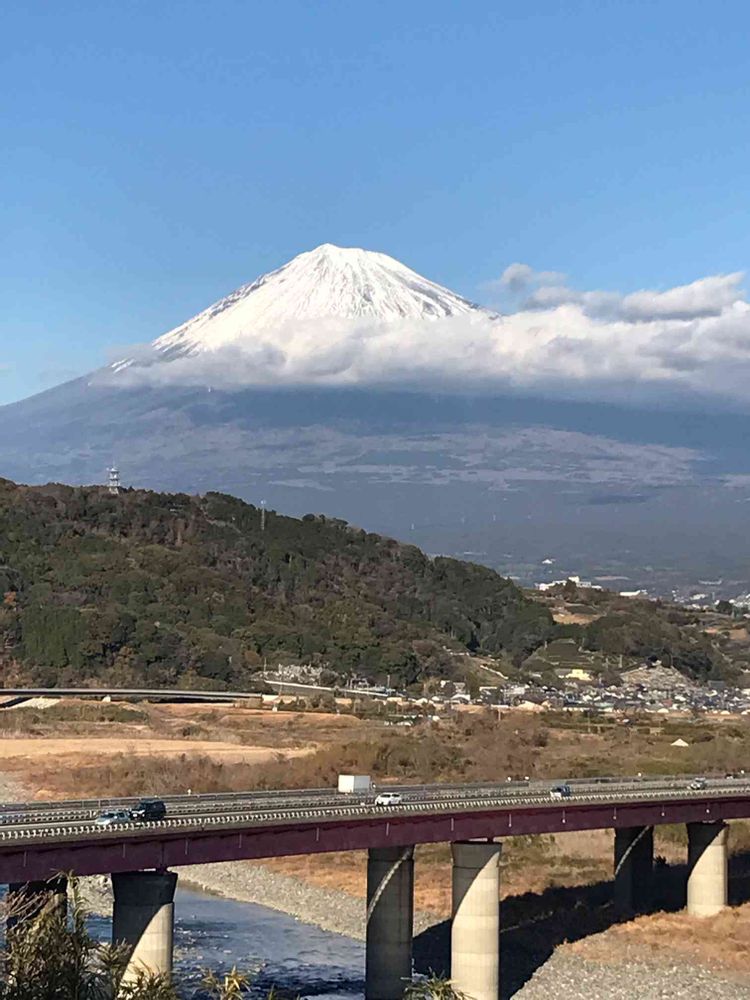 途中、神奈川県下は雲の方向が悪くて富士山が形良く見えませんでしたが富士川SAではご覧の通り雲を見事に回避して絶景になりました。