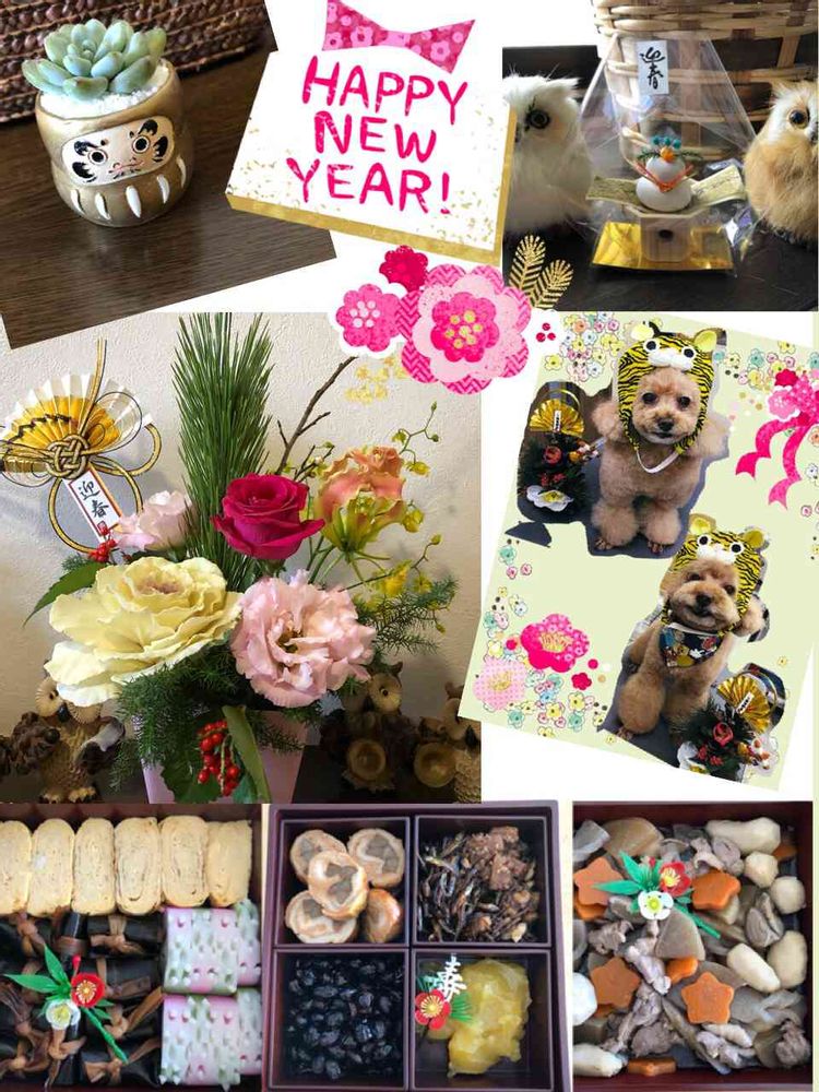 お正月飾りもおせち料理もわんちゃんの被り物も ほっこりするpicで 癒されました♪(*´ `)♡