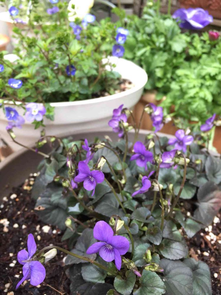黒葉スミレ と ベロニカオックスフォードブルー お花増えてきました☺️