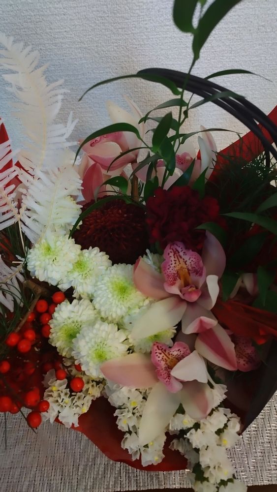 ダリアの赤やカーネーションが黒っぽいのは黒みがかったダリアとカーネーションだからです。いろいろな角度で写メしてみました。また忘れたころに違った角度で写メしたものも投稿できたらと思います✌️😆✌️