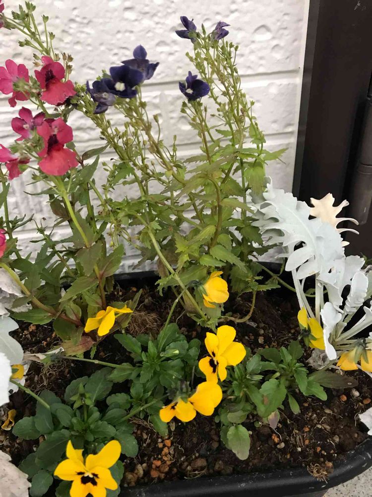 お買い得品で寄せ植えしました。ビオラはなんと一株38円。