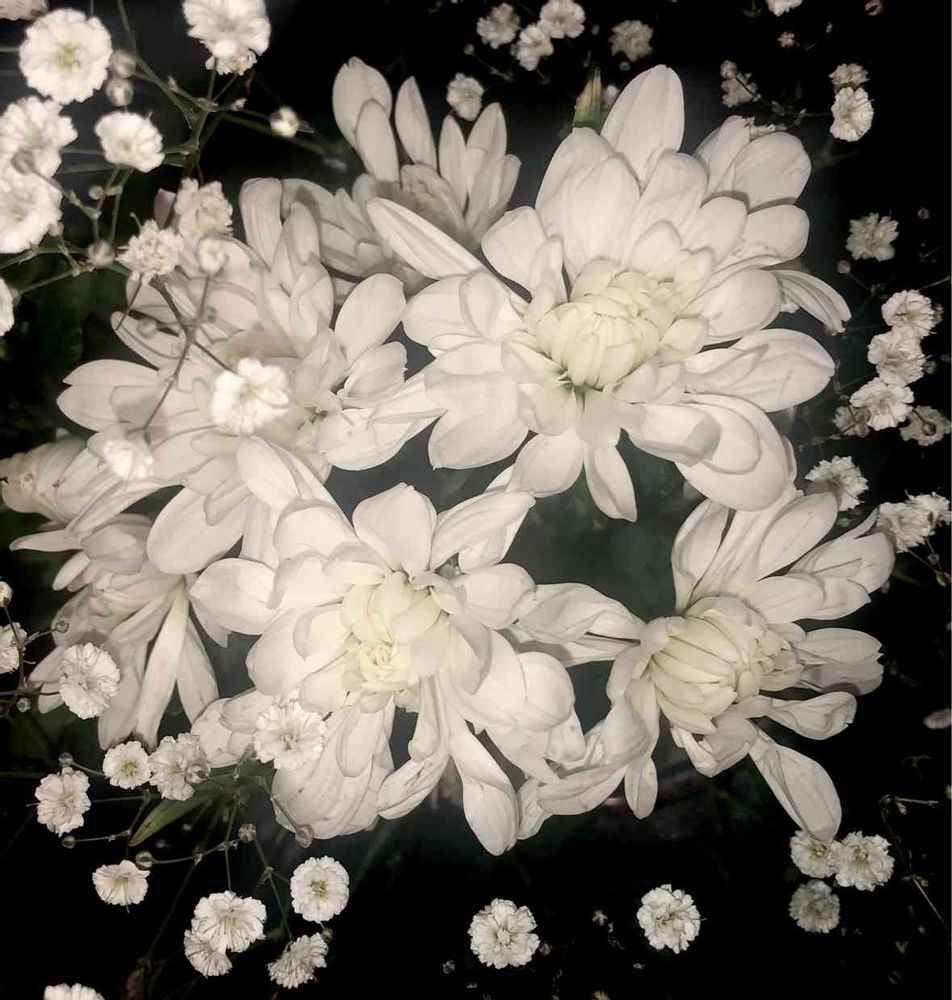 霞草も名脇役です。でも、バックが黒いと主役になりますね。