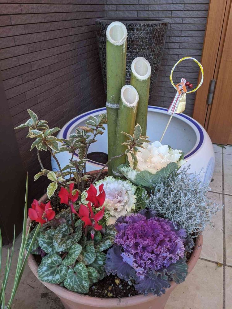 ハチとシマさんの玄関,葉ボタン,斑入りやぶこうじの投稿画像