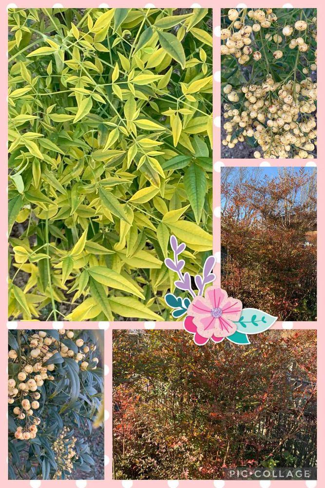 赤は葉が紅葉しています。赤い実はもうどこにもありません。人の背丈よりもずっと大きいです。白は黄緑色の葉が綺麗です。実もたくさんつけています。