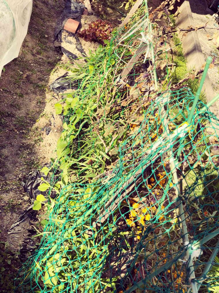 一時スナップエンドウが背が高くなりましたが、ライ太郎が頑張り、今では風よけにもなり、つかまり立ちもしっかりフォローしてます。えらい‼️