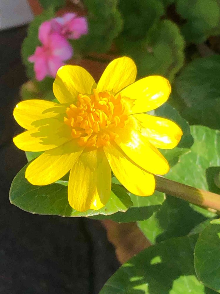 小さな庭の リユウキンカ キラキラ輝いて咲いてます💛