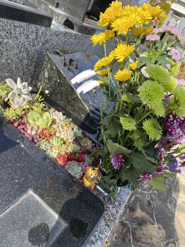ばあちゃんのお墓に多肉寄せ植え🤣