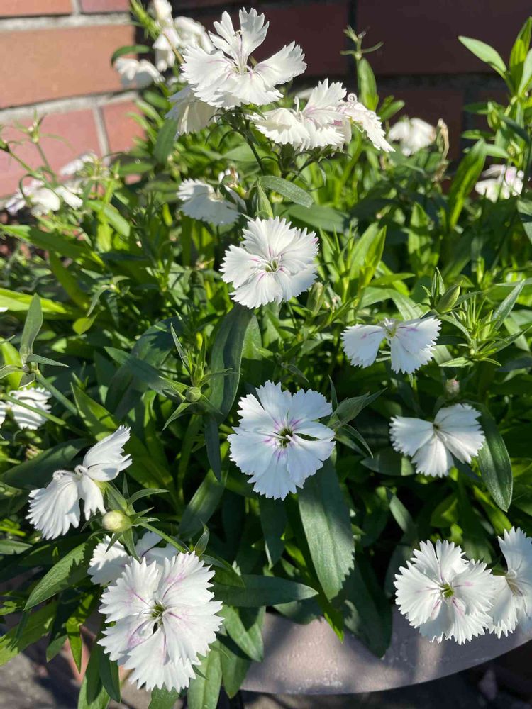 四季咲きナデシコ。時々うっすらピンクでお化粧したような模様が浮かび上がるのもキュート!