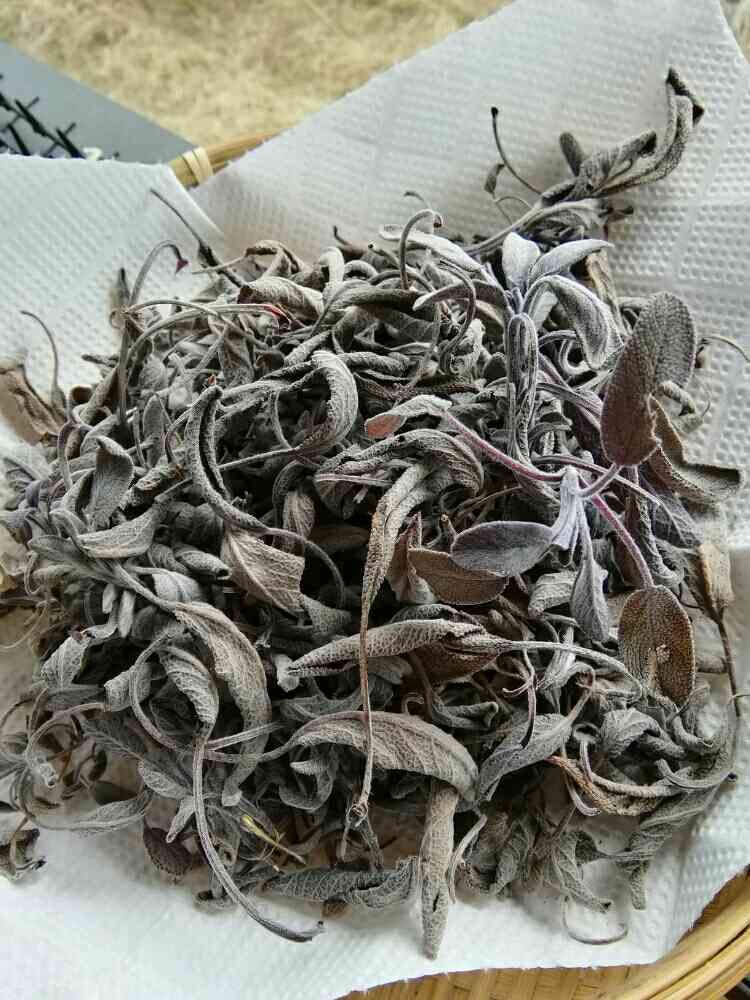 冬前に収穫しそこなったパープルセージ。ハーブティーやお料理には使えなくても、シューキーパーなどに使います🎵