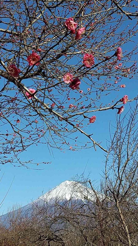 咲き出してる紅梅🌸のバックに美しい富士山🗻…wonderful👍✨